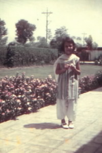 Here is my little sister Sandy in the front yard of our home in Pakistan. I was in the tenth grade at that time. |
