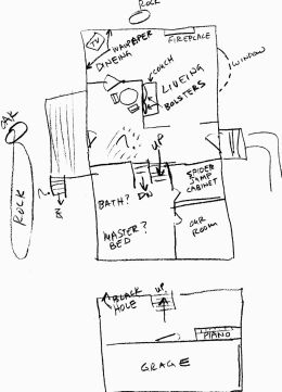 A couple years ago Charlie drew this plan of our house in White Plains. I think the wall between the living and dining is not quite accurate. |