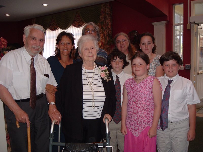 My Mother Charlotte Virginia Wiesen PerryOn the morning of May 23 my mother passed out of this life into the eternal one. For the past few weeks prior we could tell she was focusing her attention there. Even though she didn't talk about it much, she was inwardly drawing close to God. I went early that morning because we knew her time was near, and so I was in her presence when she stopped breathing. Even though I knew very well mom had a very strong "life-force," nevertheless when it came time it didn't seem like any great thing, for her spirit to be with me in one minute and gone in the next. I think that's because she was already right there in the gate, unbeknownst to us, and to her at that time it was the most normal thing just to step through with the Lord, or to fall into His embrace. So many caring souls ministered to mom in the last years. Mom always learned their names and let them know how much she enjoyed their attentions. Williamson County Medical Center, NHC Franklin, and especially Connie Macy and the good people at Southern Care. The staff at Claiborne-Hughes did all they were supposed to do and I thank God for them. The nurse on duty that morning was very good and kind and I told her I would always remember her kindness and sensitivity as long as I live, and I will. During the last few years it seemed kind of hard to get a good picture of her, but here is one from three years ago. It's one of the best pictures I have of her because she was really happy that day. It was Mother's day, 2004 and the whole family was there. ![]() Home Spirit of Prayer |