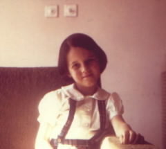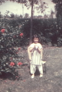 Here is my little sister Sandy in the front yard of our home in Pakistan. I was in the tenth grade at that time. |