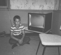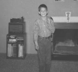 Here is my brother Charlie at about seven or eight years old. You can see my dad's hi-fi setup back there setting on the record cabinet. |