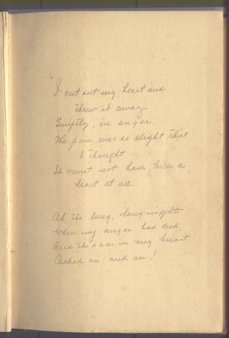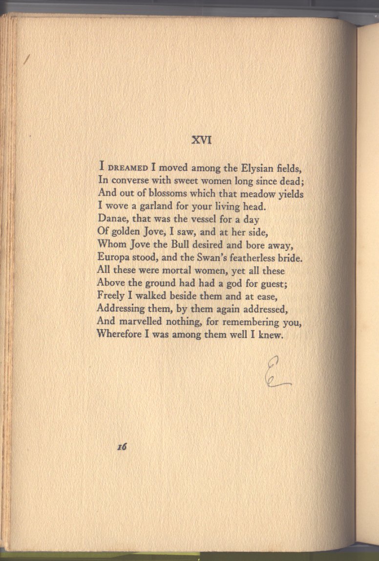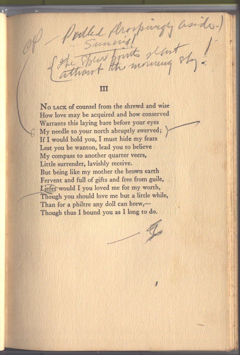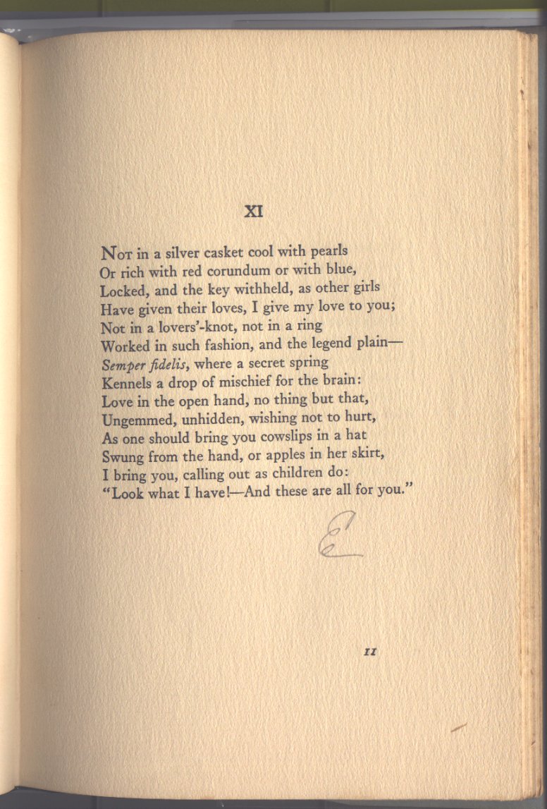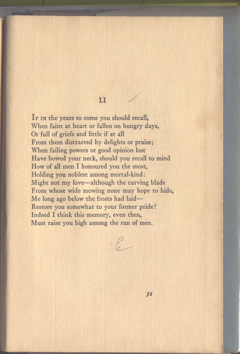 The following is the last poem in the book. Initialed "E" plus rhyme scheme noted.