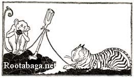 ![]() Poker Face the Baboon and Hot Dog the TigerWhen the moon has a green rim with red meat inside and black seeds on the red meat, then in the Rootabaga Country they call it a Watermelon Moon and look for anything to happen. It was a night when a Watermelon Moon was shining. Lizzie Lazarus came to the upstairs room of the Potato Face Blind Man. Poker Face the Baboon and Hot Dog the Tiger were with her. She was leading them with a pink string. |